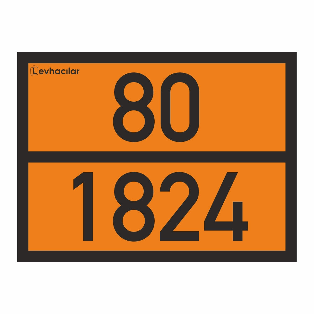 Üzerinde bulunan “80” tehlike tanımlama numarası ve “1824” UN numarası ile bu levha, SODYUM HİDROKSİT ÇÖZELTİSİ maddesini tanımlar. Tankerlerde, konteynerlerde ve dökme yük taşıyan ağır vasıta araçlarında, taşınan yükün içeriğini belirtmek için aracın ön, arka veya yan bölümlerine konumlandırılır.